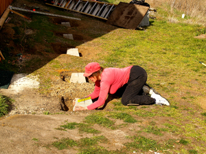 Then I mixed ready-mix concrete in a wheelbarrow and poured it around each pier. I did this step last just in case I had to make any last minute pier adjustments.