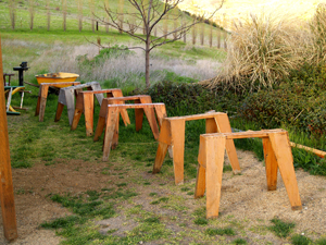 Gang-notching bottom of posts w/electric chainsaw
