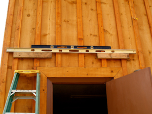 I then framed it all around with straight-grain kiln-dried DF 2x10's. The three layers of siding, sheathing, and inner wall sheetrock, plus the 2x6 framing, added up to 8.25", so I had to rip 1" off of each 2x10 because a 2x10 is actually 9.25". (Rip means cut lengthwise.) I measured and shimmed very carefully during the door-jamb framing process so the door would fit the jamb with only 1/8"-3/16" clearance all the way around, leaving just enough room at the bottom for the threshold.