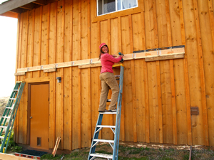 Eric uses Sawzall to trim excess siding