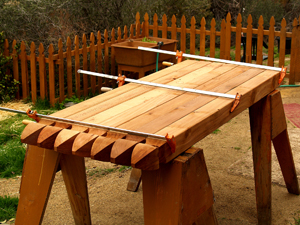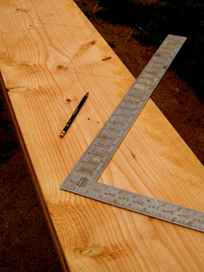 Note: When you build a deck, the most important tools are LEVELS: string-levels, a long level, a medium level, and a short (torpedo) level. The old saw: "Plumb, Level, and Square" should be muttered under your breath constantly like a prayer as you work so you won't end up muttering something else when you discover you just built a sloping parallelogram instead of a level rectangle.