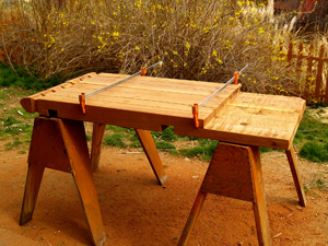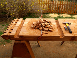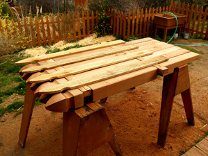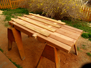 It was a cool April, so getting it done before the scorching summer was imperative. I sketched out some detailed plans, made a materials list, and drove the old truck to Home Depot, where I used my 12-month interest-free charge card, and got loaded up---or down---depending on whether you are looking at the height of the load, or the flatness of the tires.