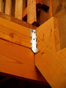 Close-up of slot-cut trick for joist hanger