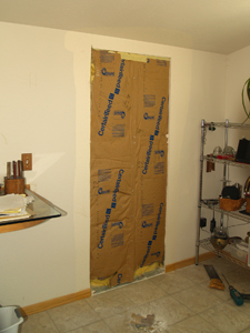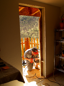To get to the finish line a little sooner, we decided to postpone building the balcony deck off the kitchen until later---or never. The deck was in the original plans and we paid the permit fee for it, but enough was enough. Fortunately we had planned ahead and left the electrical wiring out of the place in the wall where the door might be someday, and stubbed out 2 sets of wires for an outlet and a porch light.