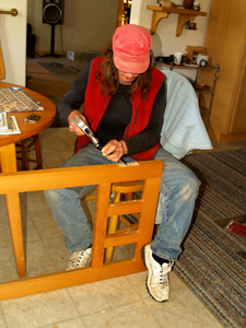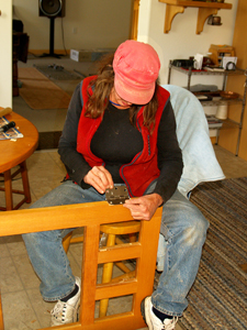 Dorothy putting in 1 of 400 screws