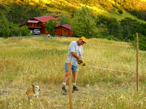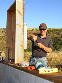 Eric's first step was to draw up his house plans, which included a site plan showing where his house would be in relation to all the other buildings on our 10 acres. Then he paid for a site review from the county. They determined his house had to be 100 feet from the property line, so he picked a nice spot and staked out the perimeter to get the south-facing orientation he wanted for solar efficiency and the best view. He wanted the kitchen on the east side to catch the first rays of sun in the morning, the entrance on the west where the road comes up, and the bedroom on the cooler north side. The well and the electricity were already available, so he was in luck, not having to spend about $10,000 for those two necessities. The site was approved, and he was ready to proceed.