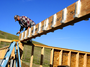 Important tip: The lumber yard we buy from (and most lumber companies) helped us determine what size beam we needed to free-span the basement ceiling and what size of ridge-beam to use for the roof. The company they ordered our BCI joists and Versa-Beams from has a computer program that prints the engineered-data sheet you can use to show the county when you submit your plans. The sheet illustrates your floor and roof layout and lists how many joists and brackets to order. It's a great service!