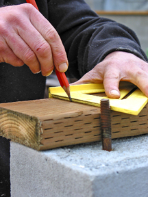 Please note: If you need to install a few more J-bolts here and there after the fact, just drill the holes with a 1/2" dia. concrete drill bit, and pound in 7"-10" long, 1/2" dia. concrete anchor bolts made for that purpose. Code requires an anchor bolt no more than 12" from the end of any sill plate. It's hard to judge where the ends will be when you are initially setting your J-bolts into the wet concrete, but adding more as needed is not as tough as it sounds.