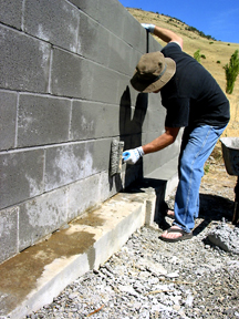 A rough estimate of the cost of the block walls was $5.00 a block, which included the block, mortar, and labor. Eric kept the cost down by hauling the blocks and mortar himself and having everything ready for the mason when he came up. If the mason does it all, as in a commercial job in this area, it's about $8/block.
