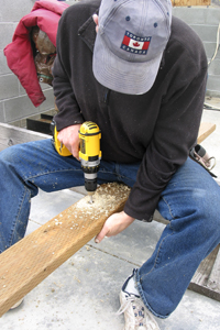 Dimensional lumber is strong and nice to work if it's straight, clear, and kiln dried, but not if it's bowed, cupped, twisted, green and wet, or full of knots. Eric is using green lumber for his wall framing, however, because it's cheaper, it's DF (Douglas fir graded #2-and-better) and allowed by code. He'll keep it stickered and covered until immediately before its use, and he'll work with it by using methods of forceful persuasion whenever he has to. Slight shrinkage in the width of vertical wall studs is not as critical as horizontal floor joists shrinking away from their resting spot in the joist hanger seat (squeak, squeak). There are methods to fix that problem, but prevention is best!